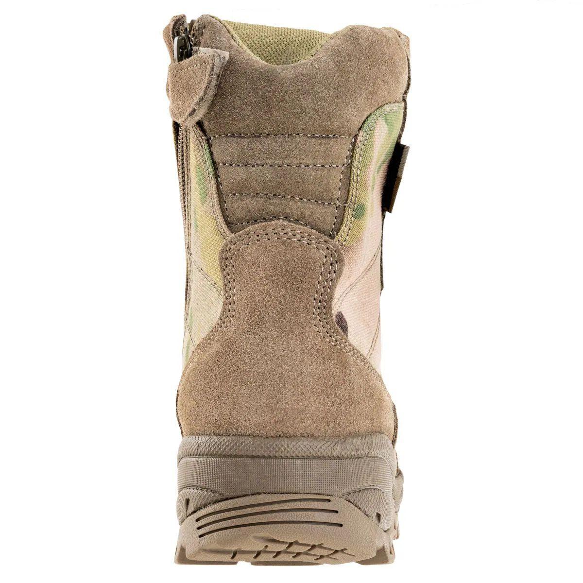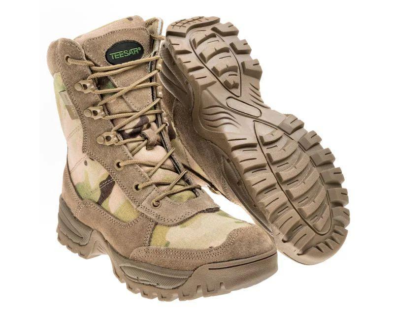 Тактичні шкіряні камуфляжні черевики MIL-TEC TACTICAL SIDE ZIP BOOT мультикам втілюють у собі поєднання високотехнологічної німецької якості та доступної ціни. Купити ці армійські берці підійде для використання як військові, так і повсякденні любителям мілітарі стилю. Верх з натуральної коров’ячої шкіри нубук у комбінації з сітчастим поліестером дозволяють забезпечити взуття максимально “дихаючими” характеристиками зберігаючи при цьому високі показники зносостійкості. Завдяки мембрані Thinsulate™ Insulation взуття має терморегулюючі властивості, ці армійські берці можна використовувати як демісезонні, так і як зимові. Надійна блискавка YKK дозволяє швидко знімати та одягати взуття. Посилений задник та носок. Перфорована поліестерова підкладка, наповнена спеціальною м’якою піною, створює оптимальний мікроклімат усередині черевиків. Підошва складається з кількох шарів, кожен із яких виконує свою функцію. Внутрішній EVA забезпечує амортизацію, має стійкість до вологи та температурних коливань. Задня частина оснащена гнучкою полімерною вставкою для додаткової фіксації стопи. Підошва кріпиться до основи вулканізаційним способом, що підвищує термін використання взуття та створює додаткову водонепроникність. Еластичний жорсткий гумовий протектор має підвищену зносостійкість, погашає основне навантаження. Знімна устілка з супінатором зроблена з гіпоалергенного, стійкого до грибків і бактерій матеріалу EVA, що володіє одночасно м’якими і пружними характеристиками, що дозволяє запам’ятовувати форму стопи.