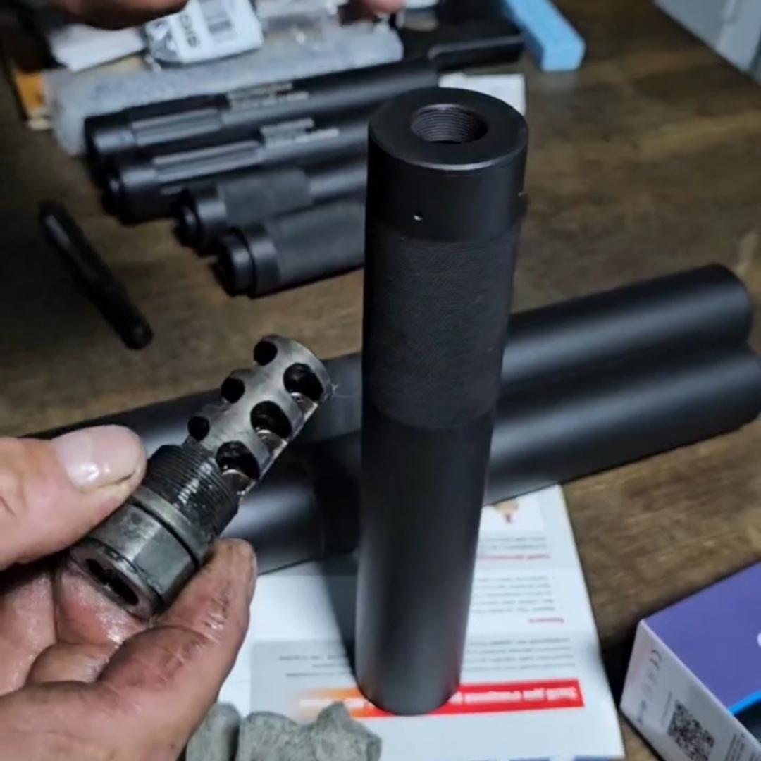 Цей комбінований Глушник-ДТК для АР-15 є ідеальним рішенням для стрільби зі зниженим рівнем шуму на 75% та керованого відведення газів. Завдяки спеціально розробленому ДТК з різьбленням поверху для закріплення глушника, цей виріб дозволяє поєднати в собі обидва аксесуари, забезпечуючи зменшення звукового та візуального відбитку. Глушник має діаметр 45 мм, довжину 237 мм та складається з 10 камер для ефективного приглушення звуку. Виготовлений з розбірного дюраль-сталевого сплаву,