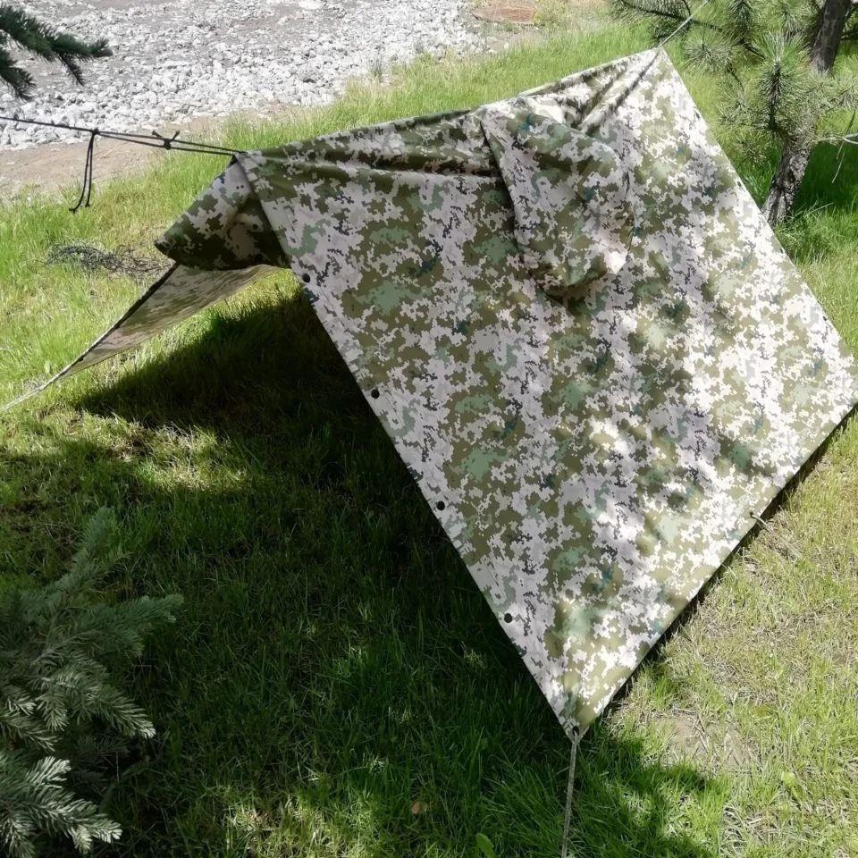 волого-захисною накидкою від негоди, тентом або наметом, як тимчасове укриття або покривалом на землю. Є можливість скріпити декілька пончо у великий намет.