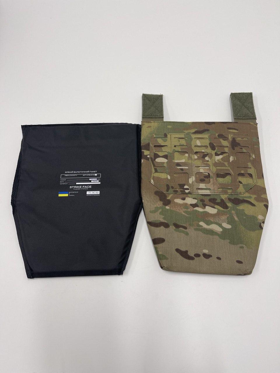 Даний елемент спорядження комплектується балістичним пакетом 1А класу, що витримує кулі 9х18, Luger 9х19 та уламок V-50, що відповідає ДСТУ 8782. Балістичний пакет виготовлений з високомолекулярного поліетилену та відповідає 1а класу захисту згідно ДСТУ В 00
