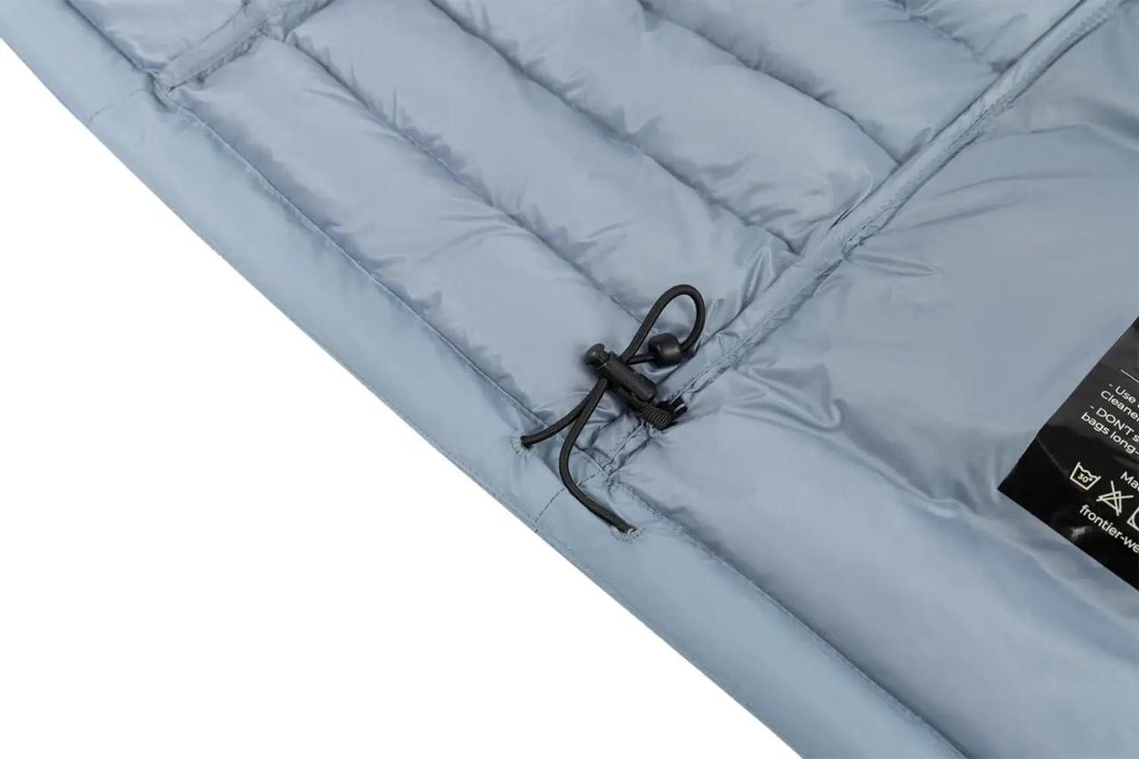 Утеплювач : натуральний качинний пух FP 750 щільністю 100 г/м² із додатковим водостійким просоченням, який захищає наповнювач від вологи до 480 год. Завдяки секційній прострочці пух рівномірно розподілений і не втрачає форму під час носіння.