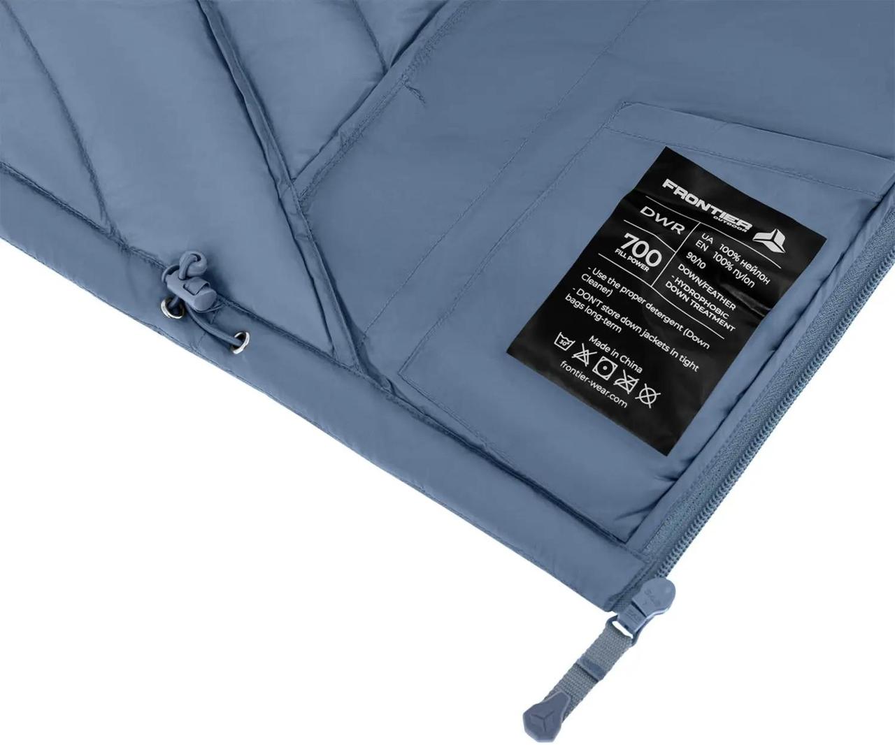 Утеплювач – натуральний качинний пух Fill Power 700 , щільність 100 г/м². Завдяки простроченим секціям пух розподілений рівномірно та не мігрує.