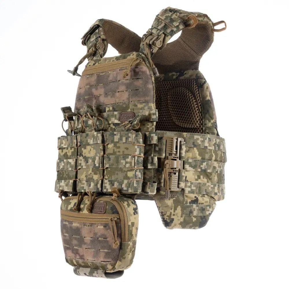 Плитоноска М7 PRO + балістичні пакети 2 класу S/M та 4 підсумка Піксель
