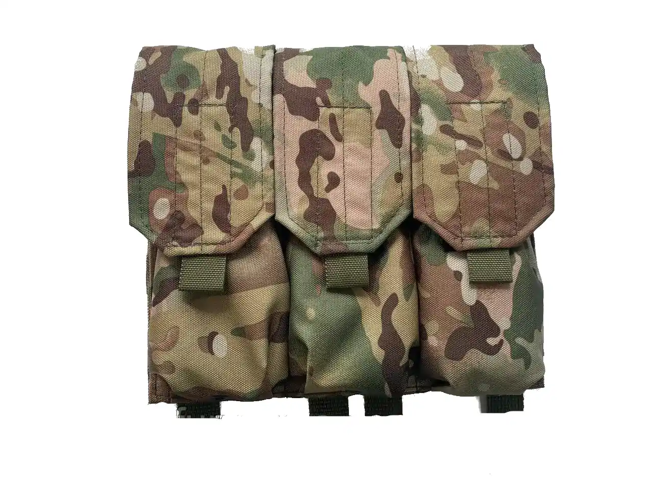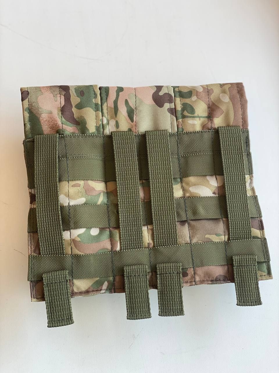 Підсумок потрійний для магазинів АК закритий з MOLLE розраховано для 3 магазинів для АК. Спорядження виготовлено з якісних матеріалів, має типове кріплення MOLLE та дозволяє використовувати його із будь-якими бронежилетами, розгрузками, тактичними поясами. Резинка в середній частині кожного карману стягує зайвий об’єм та надійно фіксує.