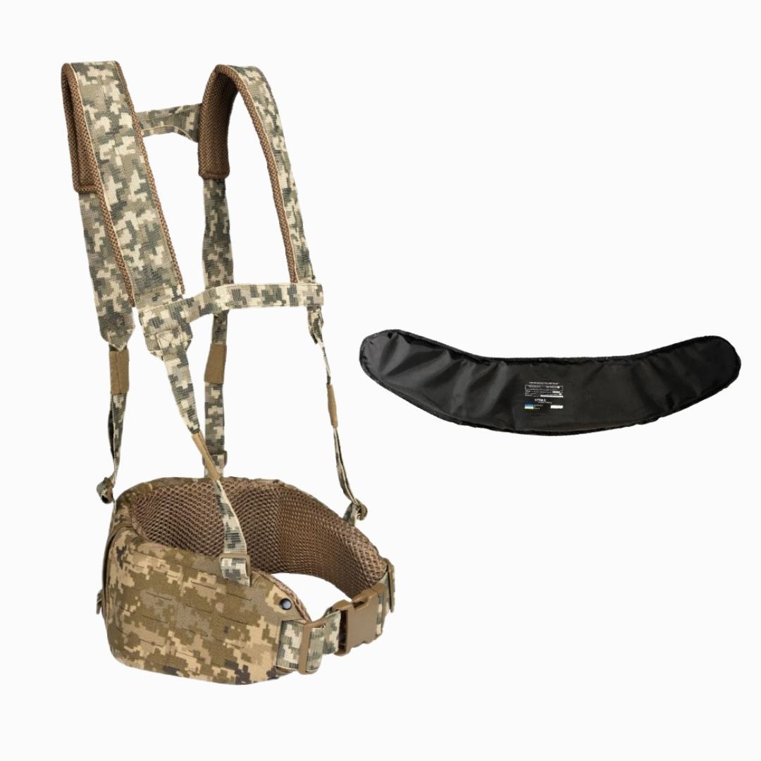 Тактичний пояс РПС Laser Cut з балістичним пакетом 2-го класу та плечовими лямками Піксель