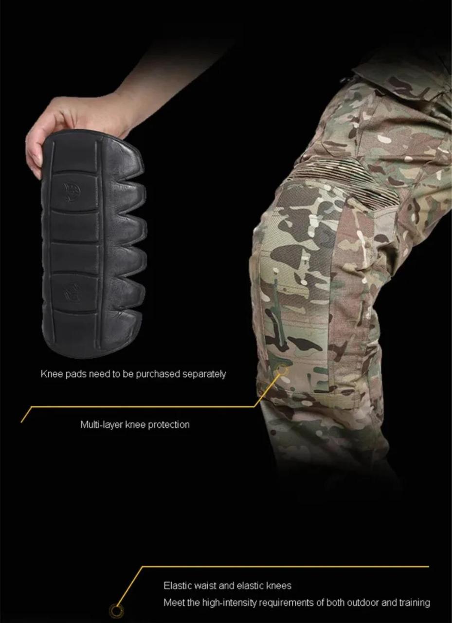 Еластичні вставки – розташовані в ключових зонах (на попереку і колінах), підвищуючи гнучкість і свободу рухів у бойових і тактичних умовах.