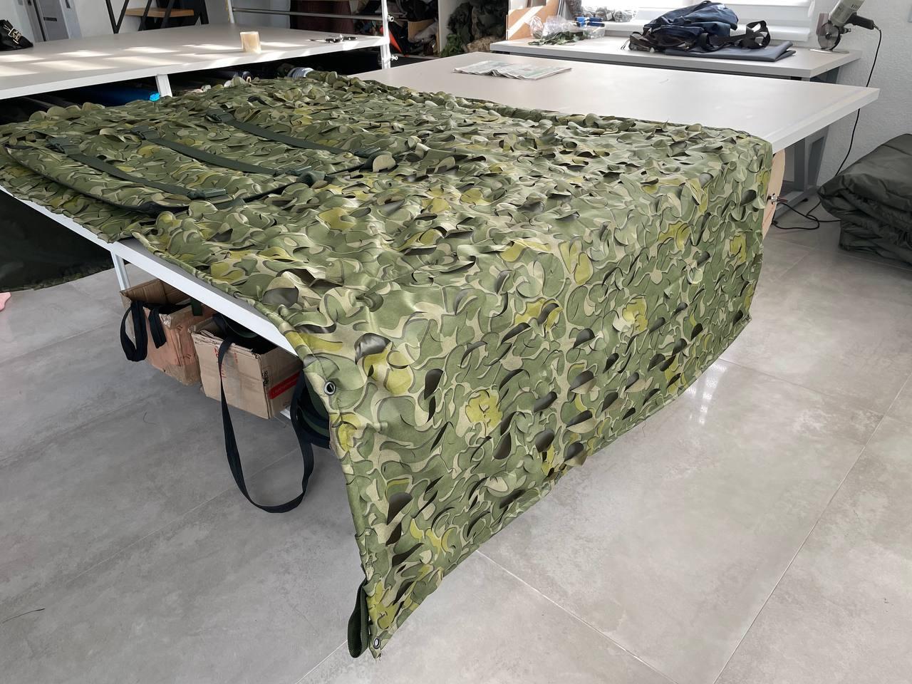 Складається з декількох шарів. верхній шар камуфляжна тканина. Трьох шарів тканини Oxford ПУ + фольгований паробар’єр між ними та підкладка Оксфорд 210. Оптимальний захист від дронів та тепловізорів